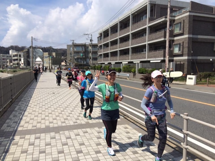 休憩をとりながらキロ/7分程度のペースで走ります。