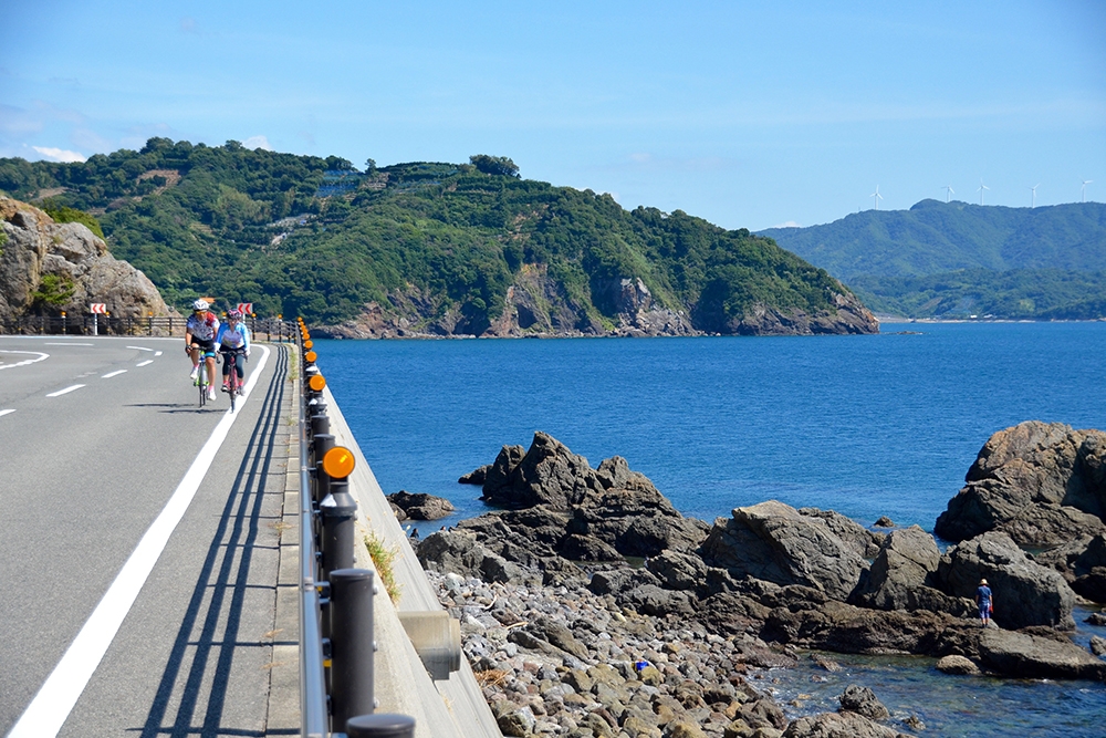 湯浅を後に、南国のきらめく青い海に沿って南へ。群青の海と白亜の岩とのコントラストが美しい白崎海岸を走れば、気分はエーゲ海!