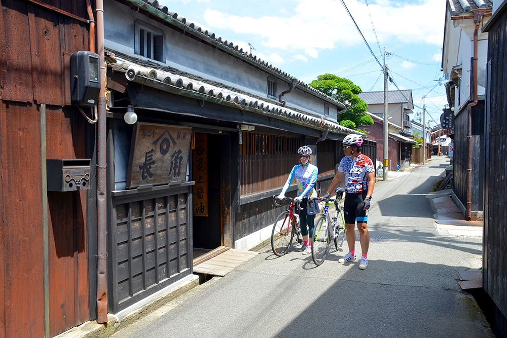 1日目は湯浅からスタートし、まずは醤油発祥の地である湯浅の古い町並みの中をポタリング。普段は入ることの出来ない、江戸時代から続く醤油蔵の昔ながらの製造現場を特別に見学します。