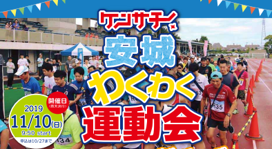 「健やか」で「幸せ」な街づくりを目指す安城で健康でいるため楽しく運動ができるイベント。リレーマラソンの後には二人三脚やパン食い競争等の運動会イベント、お楽しみ抽選会へ参加できます。安城市内へお住まいの方はもちろん、市外の方も大歓迎!