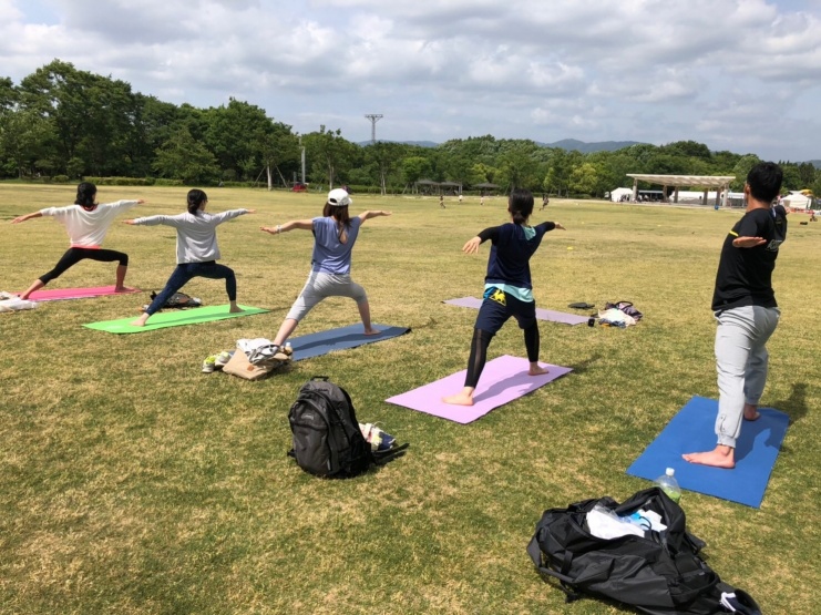 ヨガ体験の講師は、自らトレイルランもするMIKAさん。