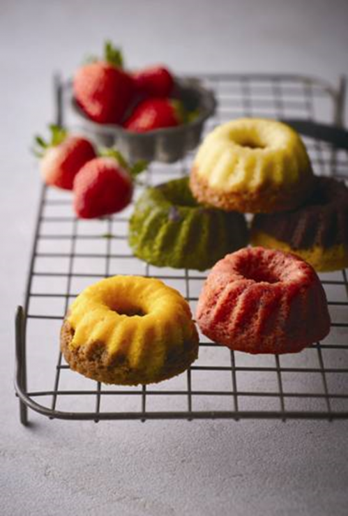紹介文:見た目も味も華やかなカラフルクグロフ。マリー・アントワネットの好物だったと伝えられるクグロフ。 生地に練り込んだ蜂蜜やクリームチーズが、果物のさわやかさを引き立てます。チョコとバナナのゴールデンコンビをはじめ、パイナップルと紅茶の意外なコンビなど、見た目も味もバラエティ豊かなセットです。