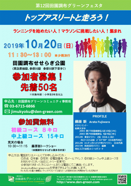 ロンドンオリンピック代表 藤原 新さんと一緒に田園調布の街並みをはしってみませんか?