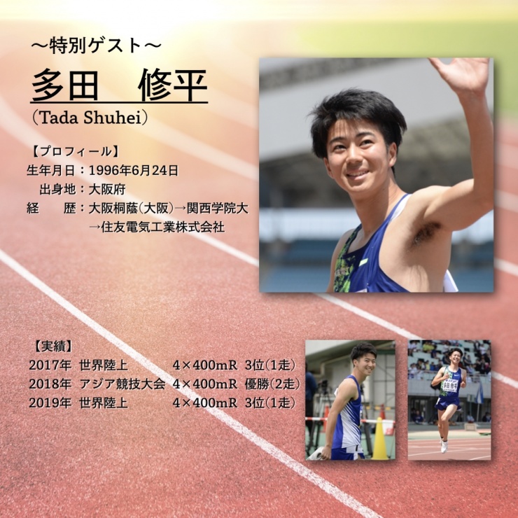 そのスタートを記念し、特別ゲストにドーハ世界陸上銅メダリストの多田修平選手を迎えたスペシャルランニングイベントを実施致します。