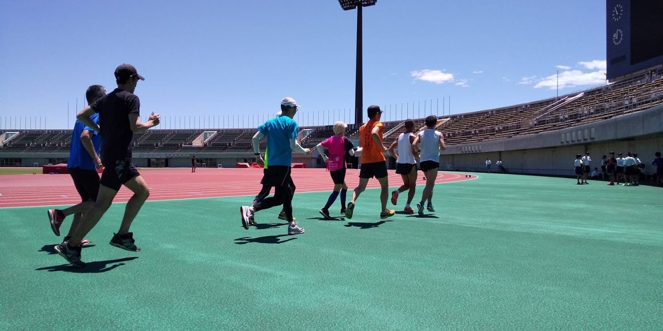 1周約1.2㎞の周回コースで15~20kmのペース走を行います。