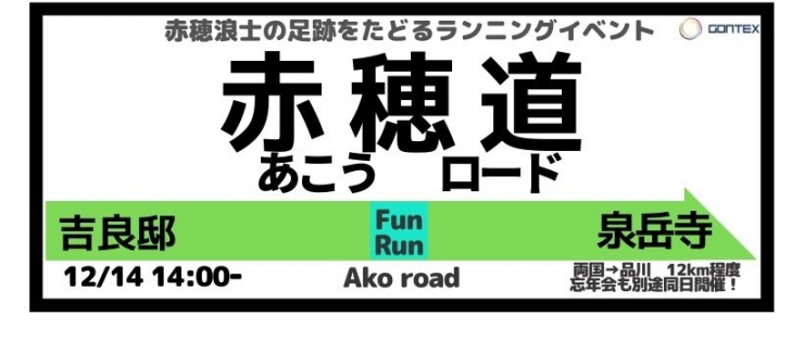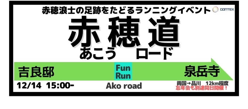 剥がれにくくかぶれにくいGONTEXテーピングがGONTEXBASHIRIと称して月2回横浜と都内の2拠点で行ってきたコミュニティイベントの2019年の締めくくりとして、赤穂浪士の道をたどるランイベント「赤穂道」を開催します!