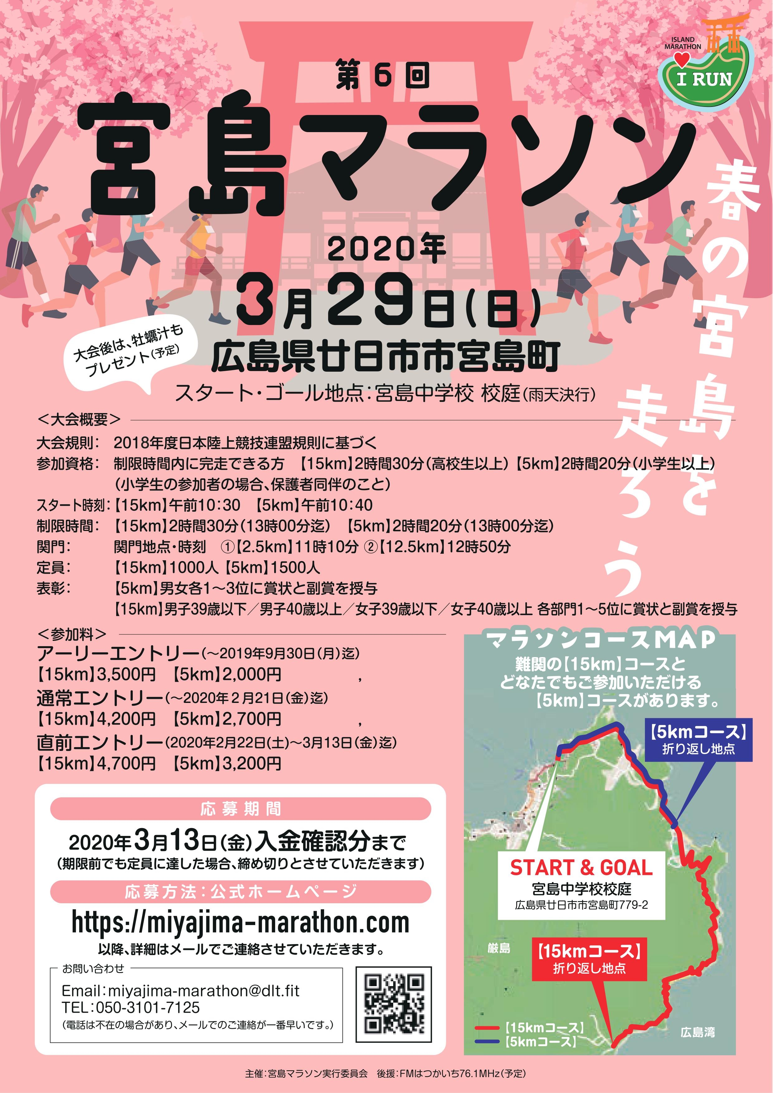 Email: miyajima-marathon@dlt.fitTEL(受付事務局) TEL 050-3101-7125