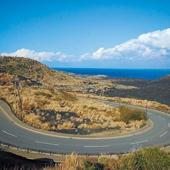 三宅島一周道路を時計回りに一周しながら、二ヶ所で雄山鉢巻き道路を走歩する。