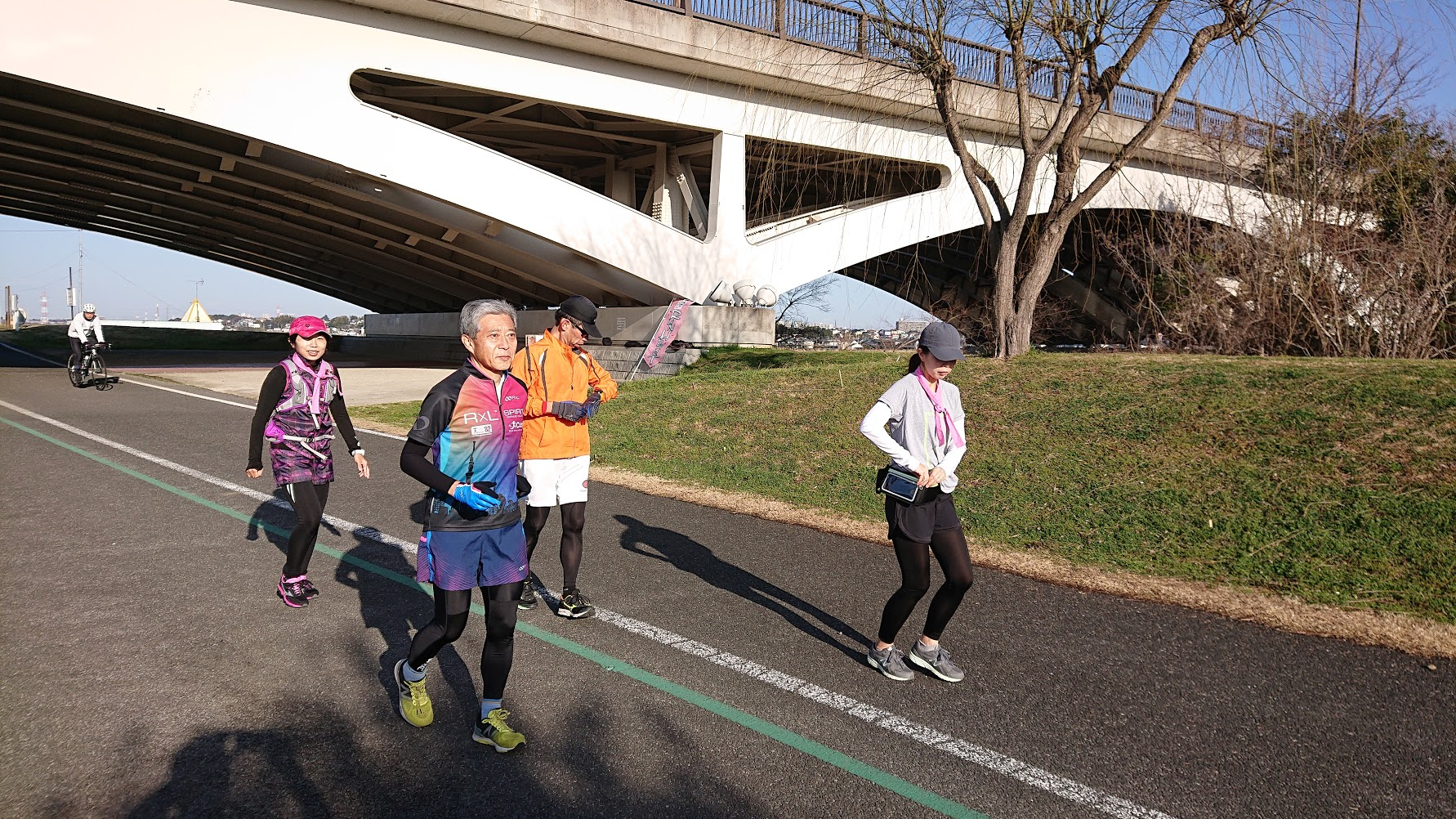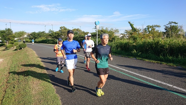 - 準備体操後、状況に応じた距離のラン(手賀沼の周遊コースを走ります)