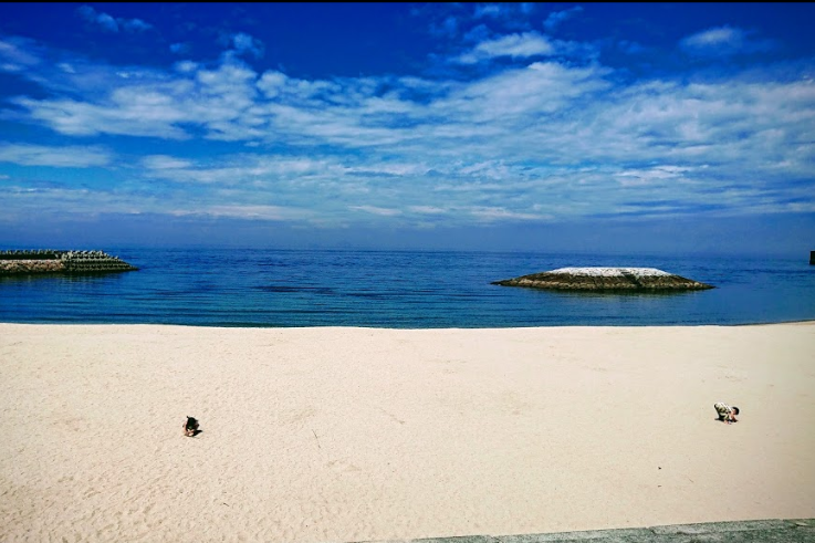 瀬戸内海国立公園内にあり、風光明媚な海水浴場である。道の駅・ふたみシーサイド公園内にある海水浴場。海岸から見る夕日が美しいことで有名で、「恋人の聖地」に認定されている。公園内の休憩所などが利用でき便利。園内のじゃこ天は美味しくて大人気。