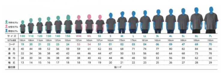 以下のサイズ表を参考に、申込みの際に選択してください。