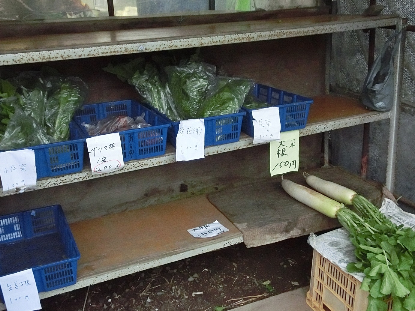 ・ゴール手前1㎞付近で、数件の販売所に立ち寄ります。柿、里芋、大根、ブロッコリー、生姜、etc.。買い物袋の持参をおすすめします。