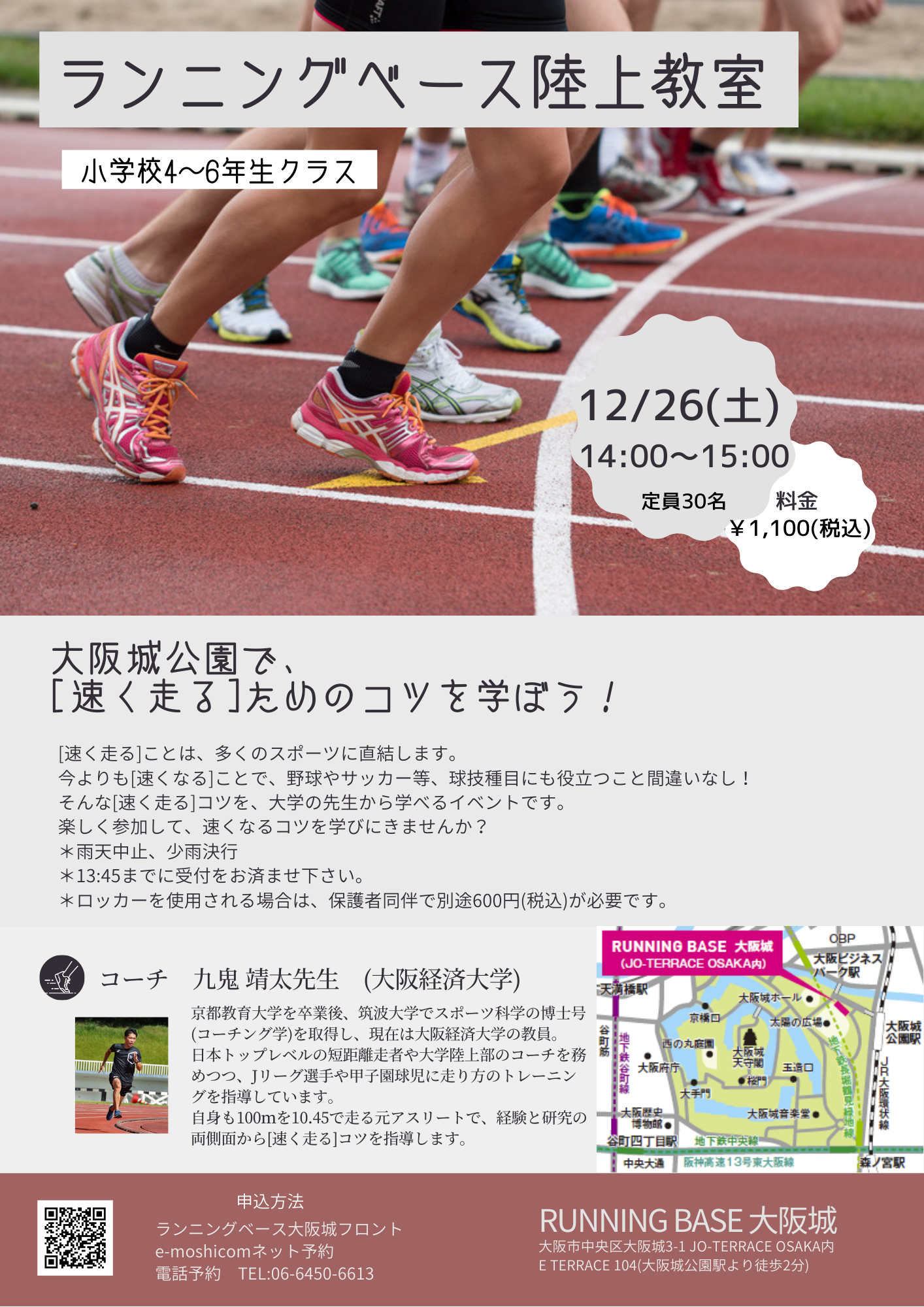 12月26日(土)ランニングベース陸上教室 大阪城公園 受付終了