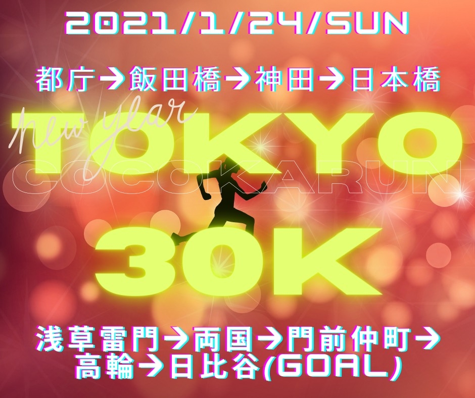 内容:東京のマラソンコース約30キロをキロ7分ペースでゆっくり走ります。