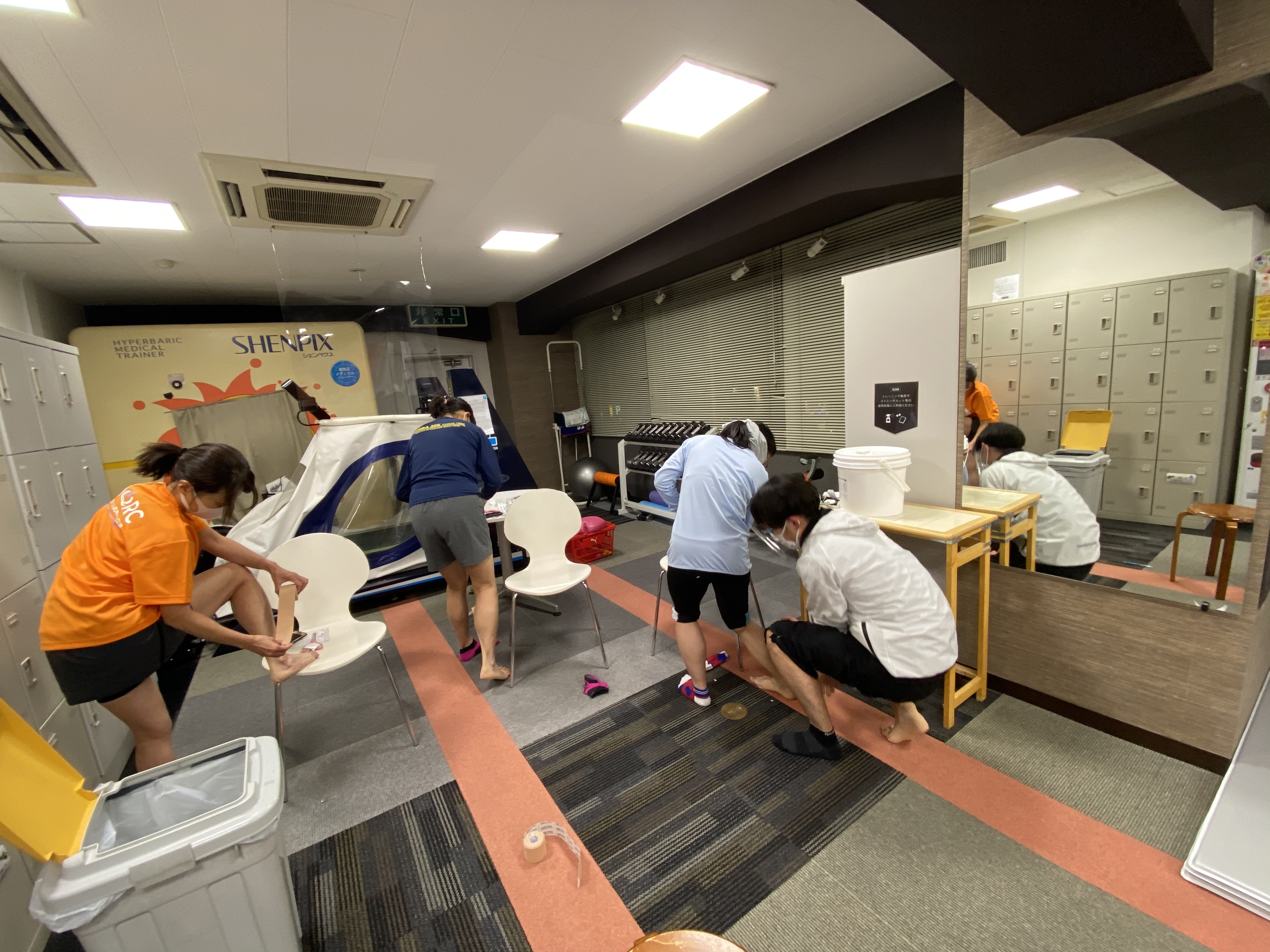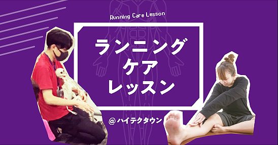 治療院勤務経験のあるハイテクタウンスタッフによるケアレッスン。今月は「テーピングの貼り方を覚えてケガを予防しよう!膝~太もも編」です!
