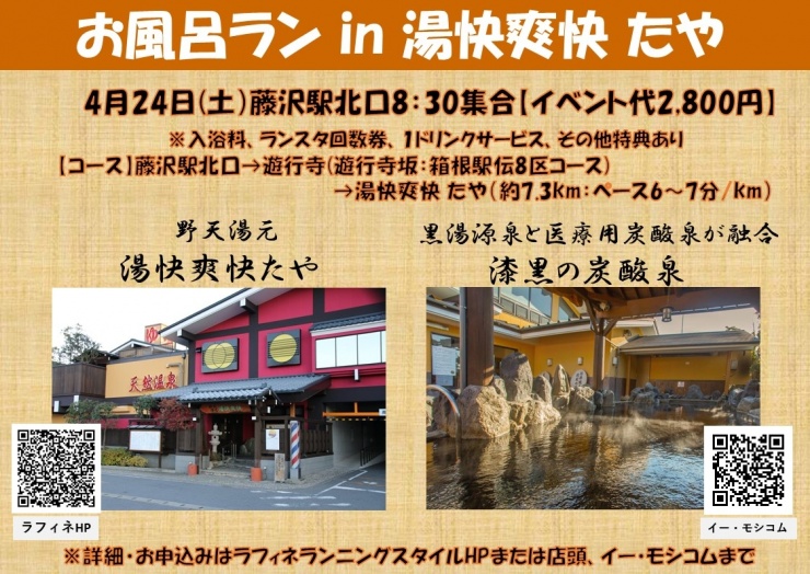 4/24(土)8:30~お風呂RUN 藤沢駅北口→湯快爽快 たや 受付終了