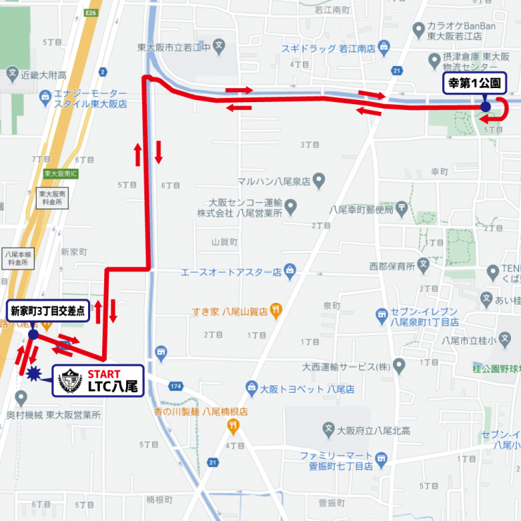8:30~9:00 ランニング ※LTC八尾⇔幸町五丁目第1公園4km