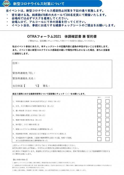 ・ イベント当日、事前にお送りする健康チェックシートのご提出をお願いします。