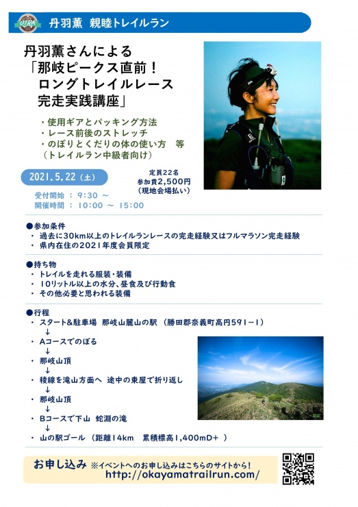 丹羽薫さんによるトレイルラン中級者向け「那岐ピークス直前!ロングトレイルレース完走実践講座」