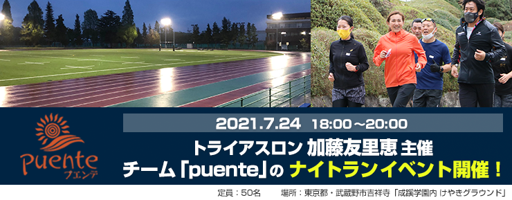 トライアスロン加藤友里恵主催 チーム「puente」のナイトランイベント開催! 受付終了
