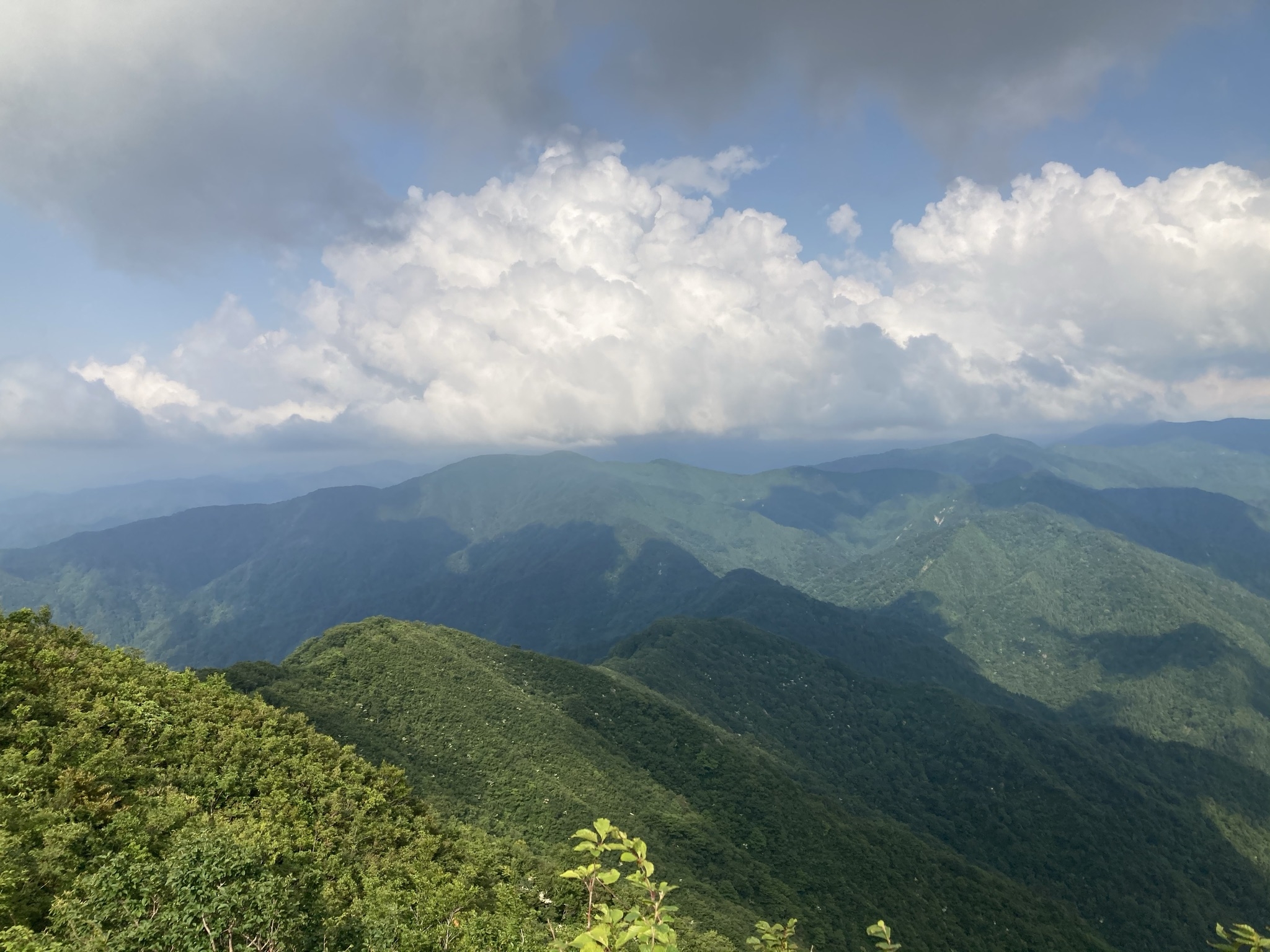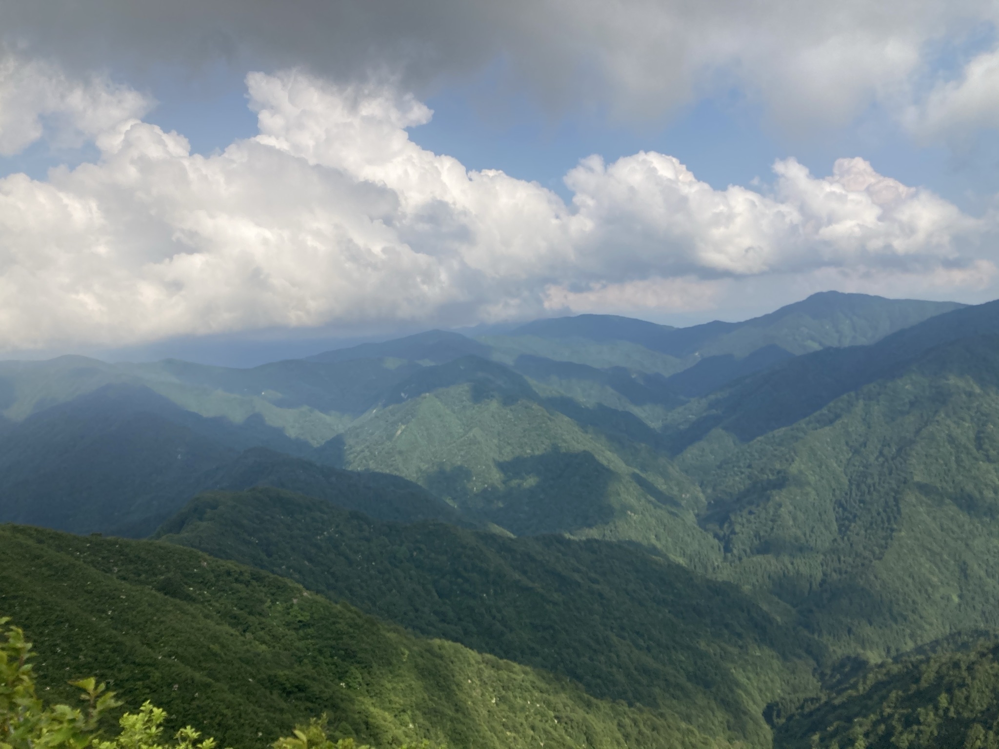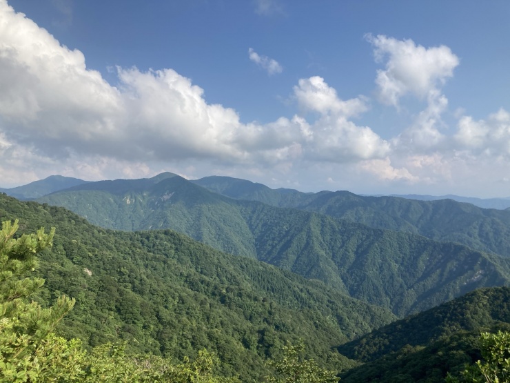 - ・小倉谷山で10分ほど休憩の後、次のピークである「火燈山」を目指して進みます。 ・ひたすら海抜900m近い稜線トレイルが続きます。遠くは福井の平野部を望めるほどの眺望の良さです。是非一度ご覧になっていただきたいですね!