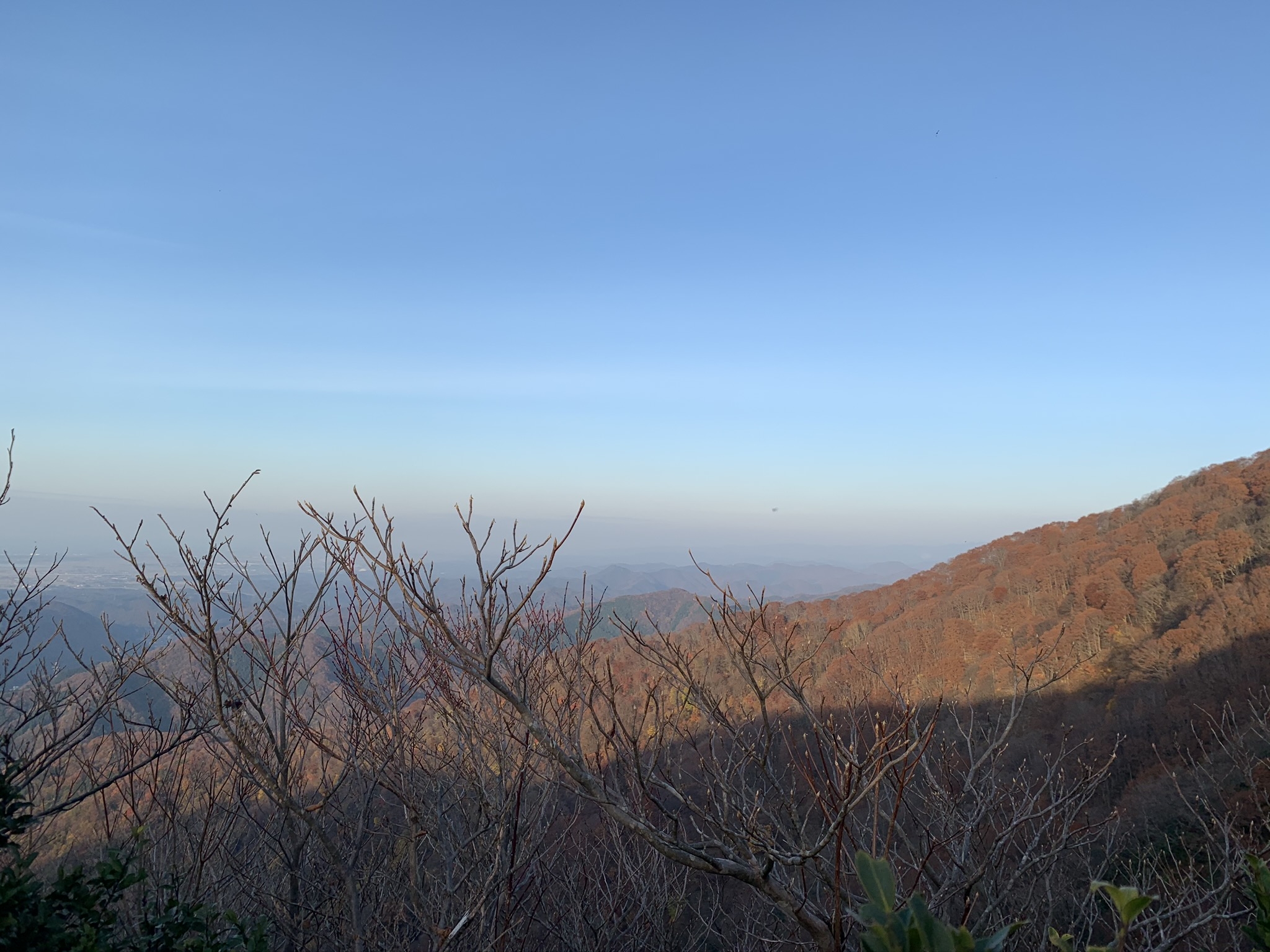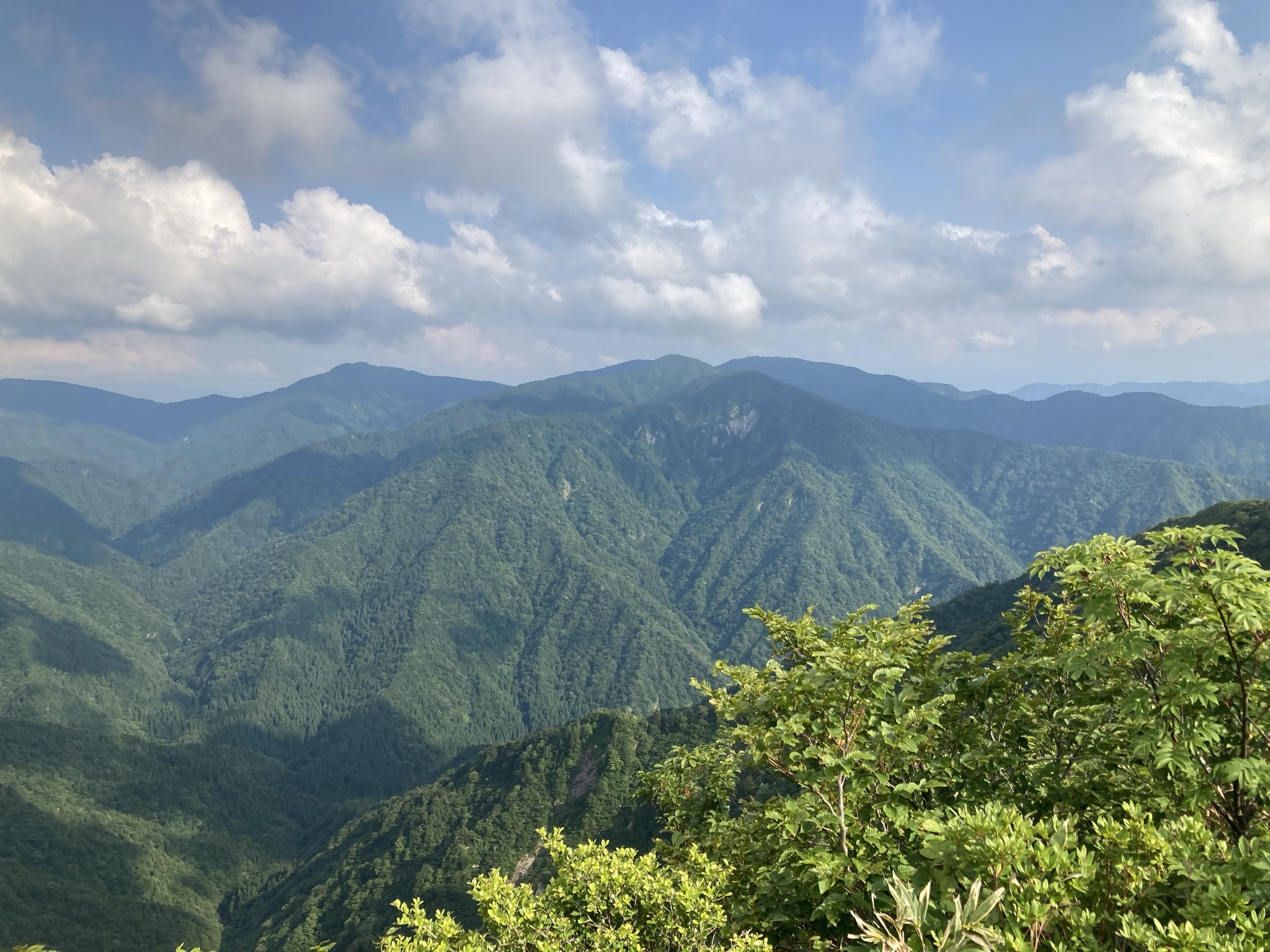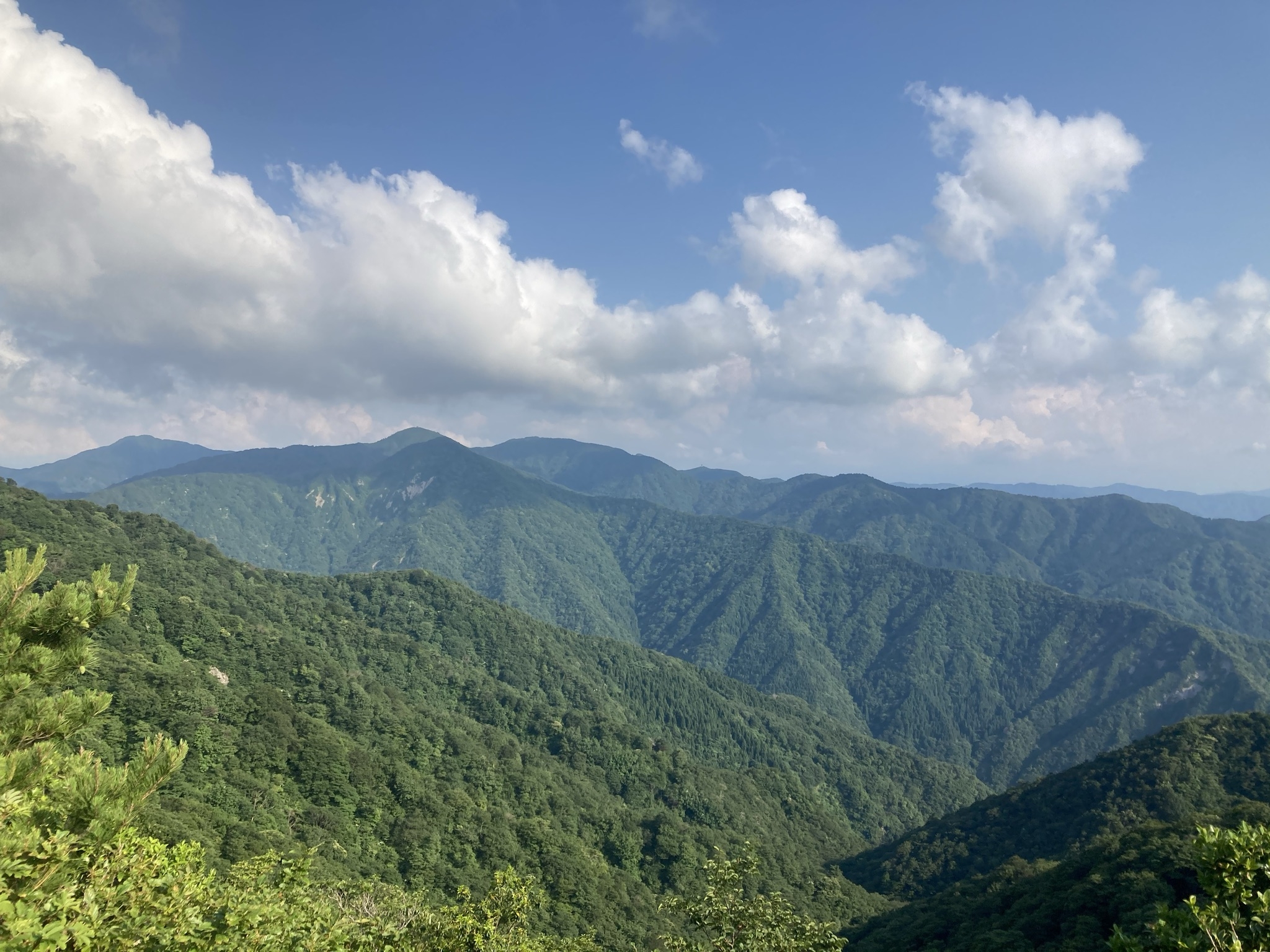 - ・小倉谷山で10分ほど休憩の後、次のピークである「火燈山」を目指して進みます。 ・ひたすら海抜900m近い稜線トレイルが続きます。遠くは福井の平野部を望めるほどの眺望の良さです。是非一度ご覧になっていただきたいですね!