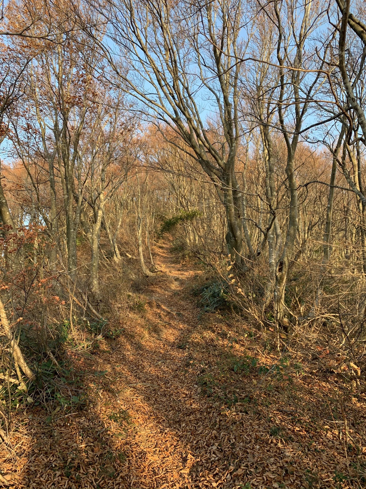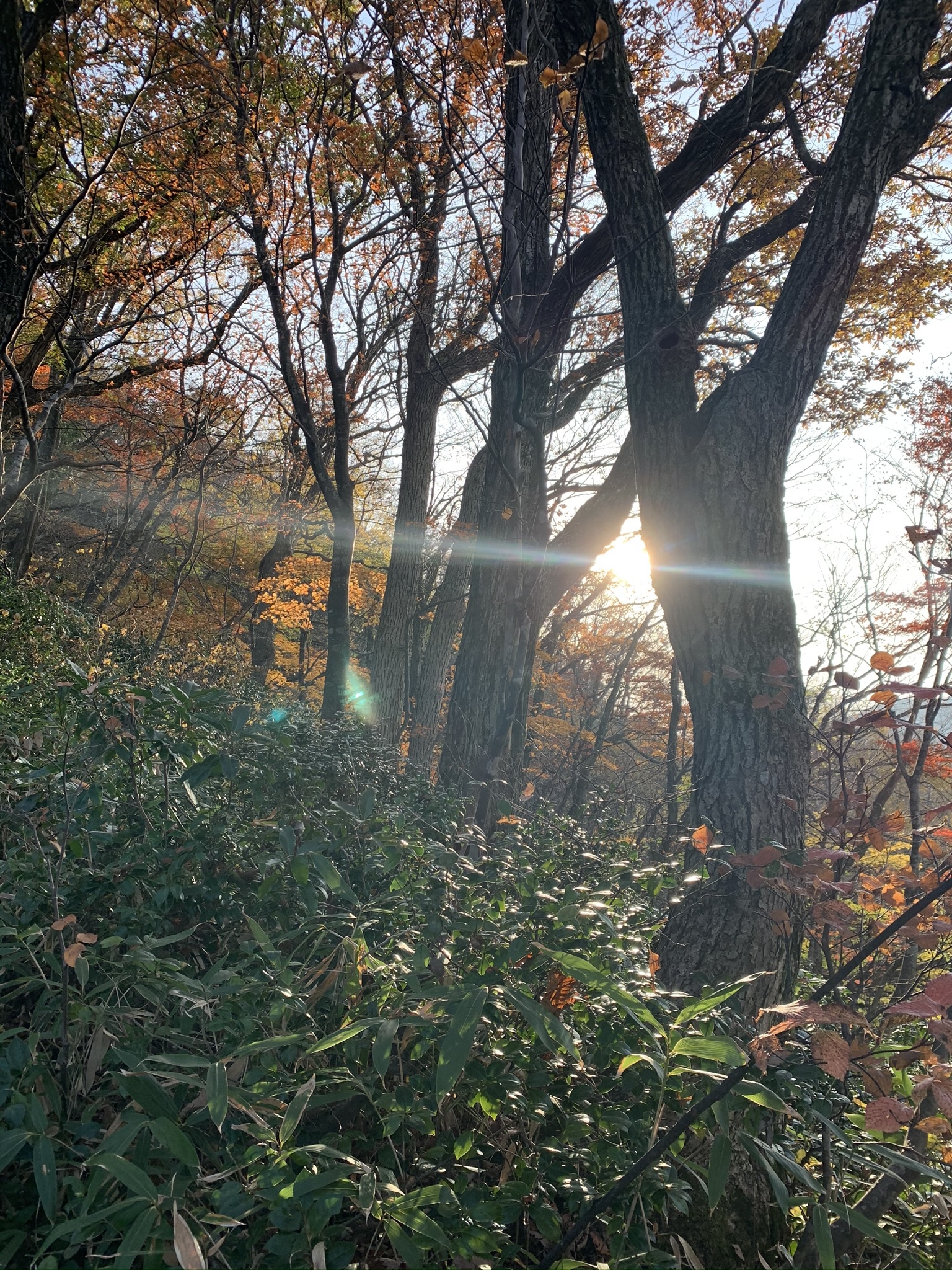 - ・我谷吊橋を渡って右手の登山口から登頂スタートです!我谷吊橋側の登山道は落ち葉、木の根、滑りやすいトレイルと登りの三重苦がいきなり待ち構えるかなり難易度の高いトレイルですが、きちんと攻略できるようレクチャー致します。 ・距離は3km程度ですが累積900m近くを一気に登るため、登りが苦手な方にはもってこいのルート!登頂まではゆっくり進んでも1時間半を見込んでいます。