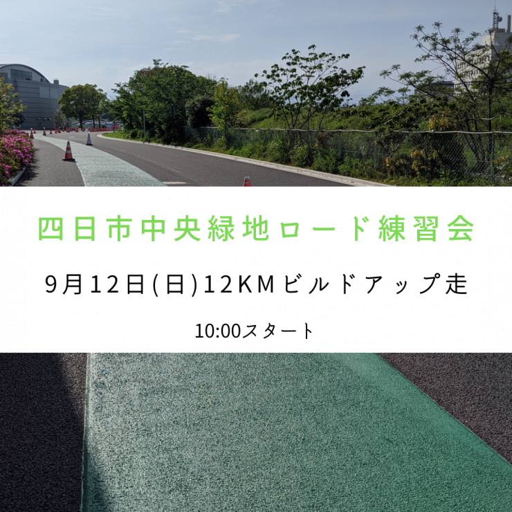 【先着10名】9/12(日)四日市中央緑地ロード練習会/12kmビルドアップ走 受付終了
