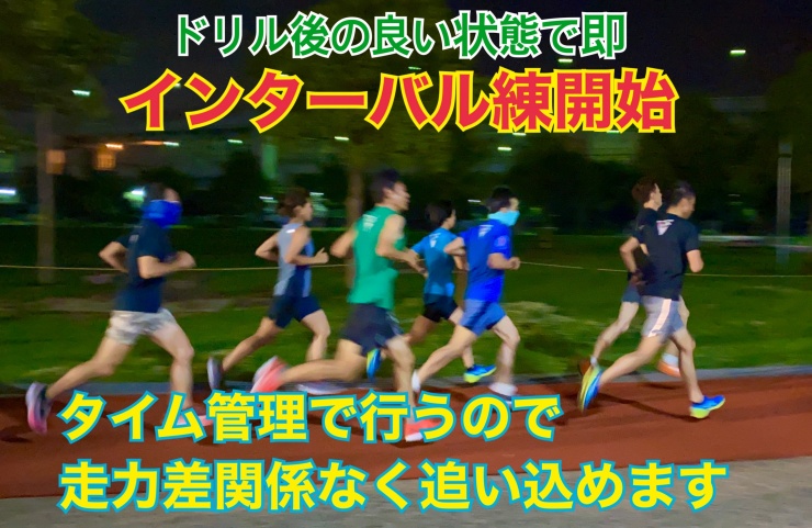キツいインターバル練習も皆でやればしっかり頑張れます!ひとりで行うのとは全く違いますよ。