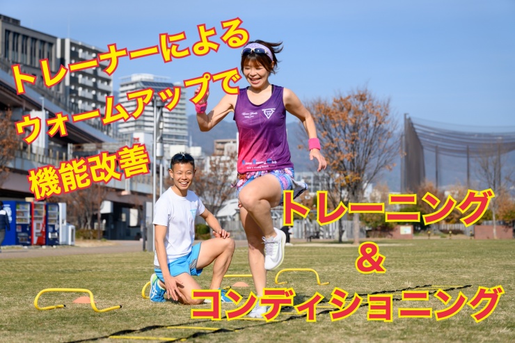 絆RCインターバル練習会では、はじめにプロのランニングトレーナーがしっかりと身体のコンディション&トレーニングをしてからメイン練習へと入ります。