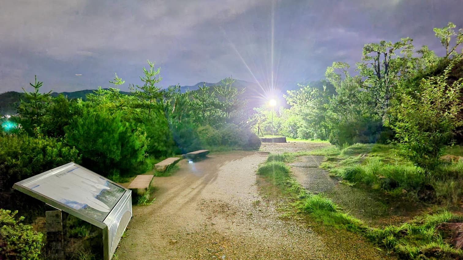 公園内を散策しますが、街灯がとても暗いので、できるだけヘッドライトを持参してください。