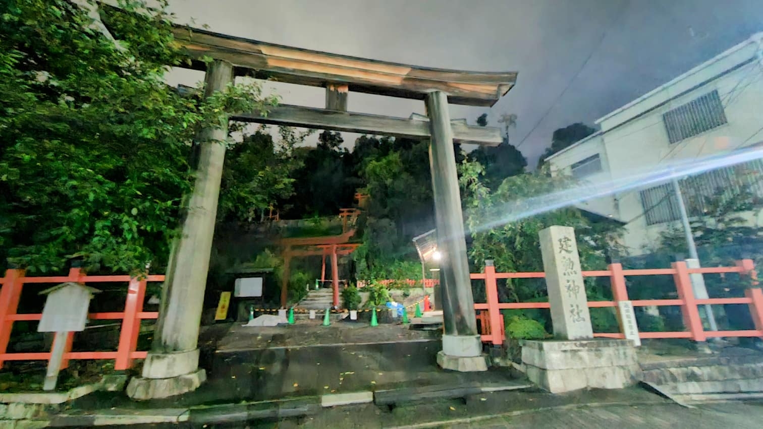 公園の東側には明治天皇の命で建てられた建勲神社があり、祭神は織田信長です。夜はミステリアスな雰囲気が漂います。