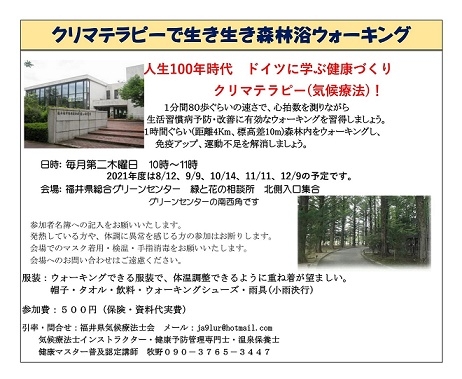 クリマテラピーで生き生き健康 森林浴ウォーキング