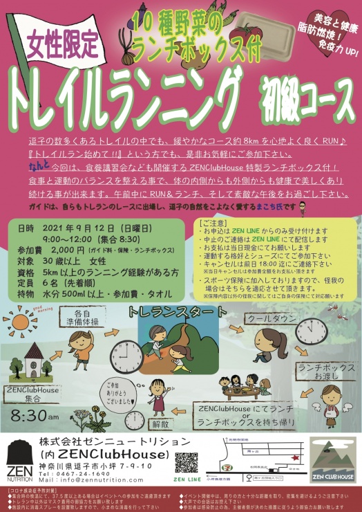 女性限定! トレラン初級8kmコース! 10種野菜のランチボックス付! 受付終了