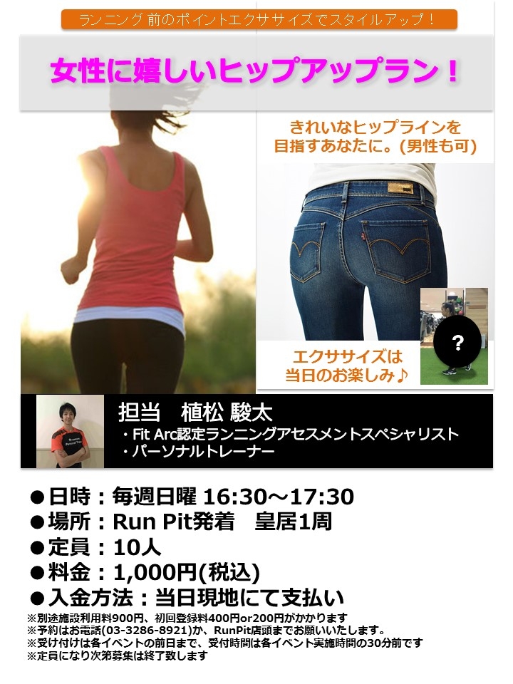 お尻引き締めに効果抜群のエクササイズを実施してから皇居を1周走ります♪エクササイズ後のランはヒップアップにプラスしてダイエットに効果あり!翌日は筋肉痛かも♪