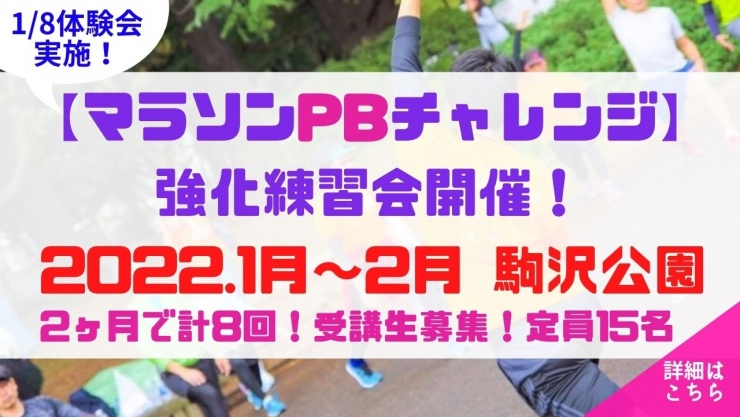 「今度こそ自己ベスト達成したい!」「久しぶりのシティマラソンに気合が入ってる!」「記録のマンネリを打破したい」という方のための短期スクール強化練習会を実施します。