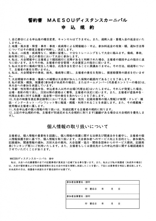 ・誓約書に署名捺印をして、当日受付時に提出してください。