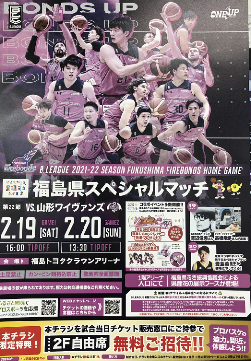 【福島ファイヤーボンズ 2021-22シーズン「山形ワイヴァンズ 」戦!】