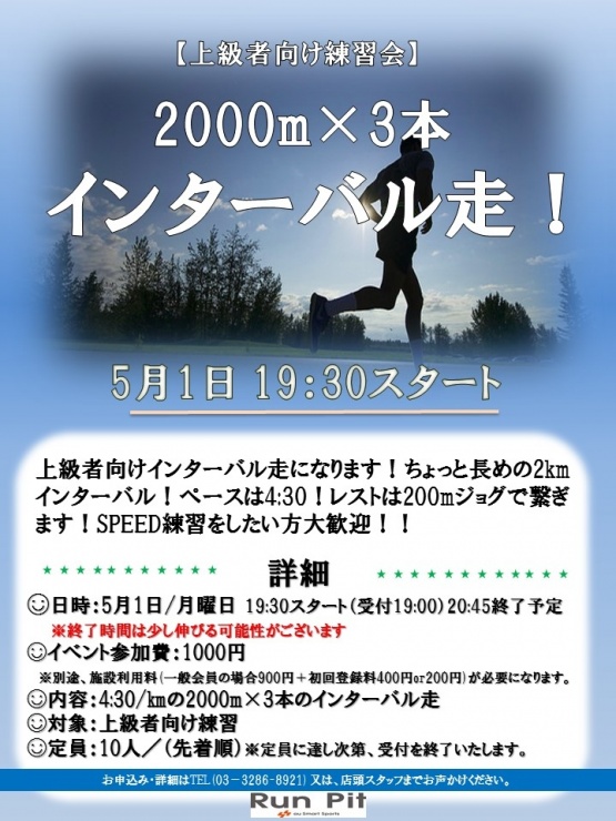 【上級者向け】 2000m×3本 インターバル走!! 受付終了