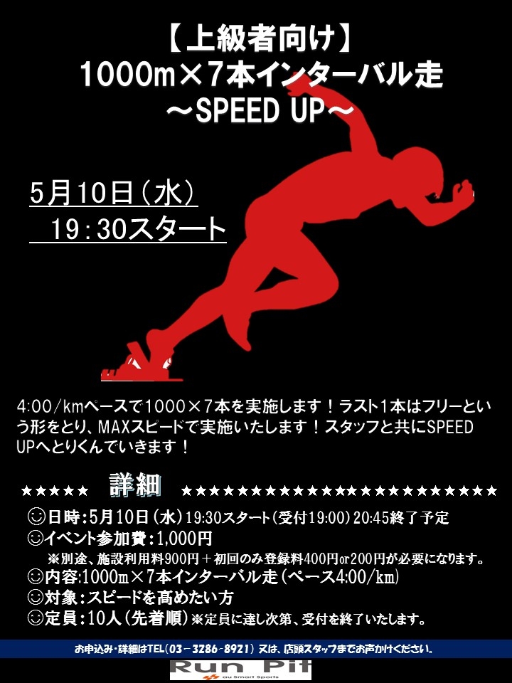 【上級者向け】1000m×7本インターバル走~SPEED UP~ 受付終了