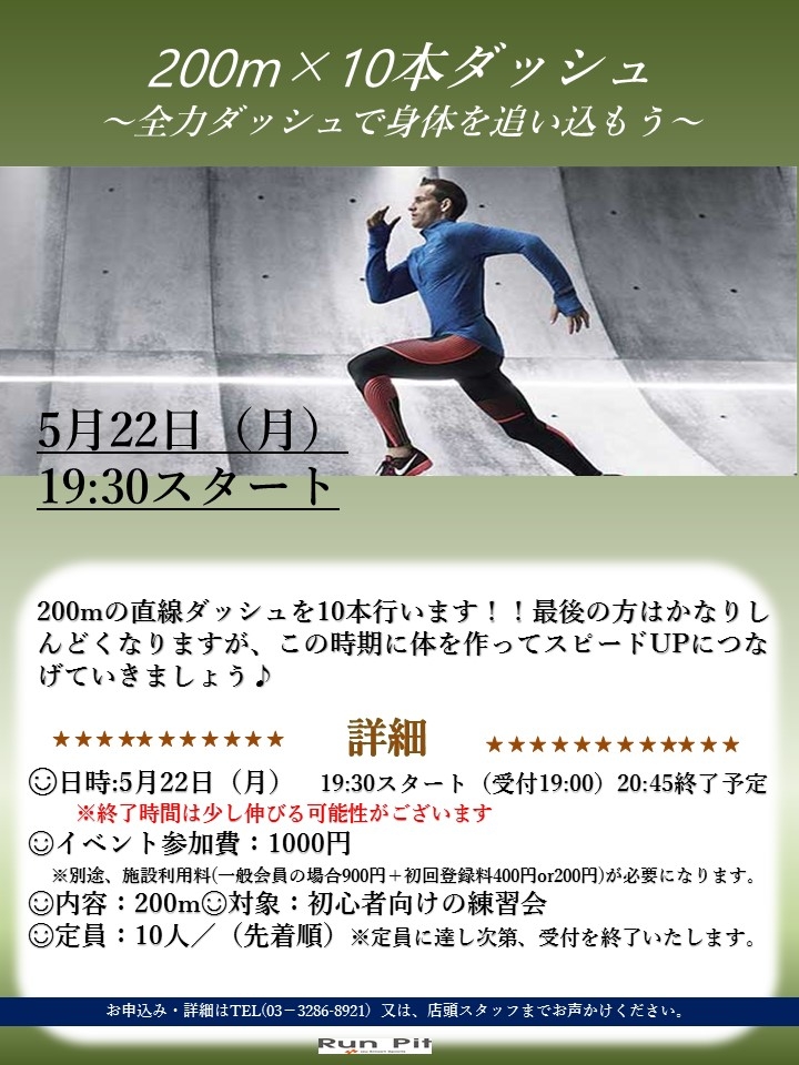 200m×10本ダッシュ~全力ダッシュで身体を追い込もう~ 受付終了