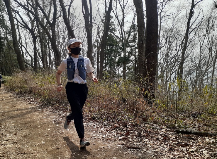 前半の登り基調では、レッスンがメインになりますのでほぼ歩きます。後半の下り基調では、参加者の方のペースに合わせながら、走ったり歩いたりします。