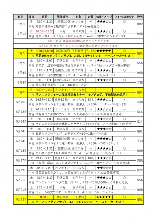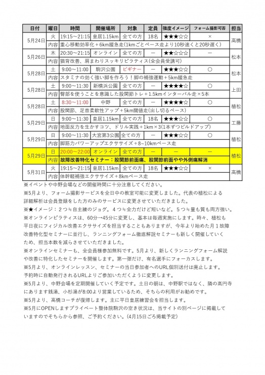 - 5/21(土)8:30担当:植松(フォーム撮影希望なし) :