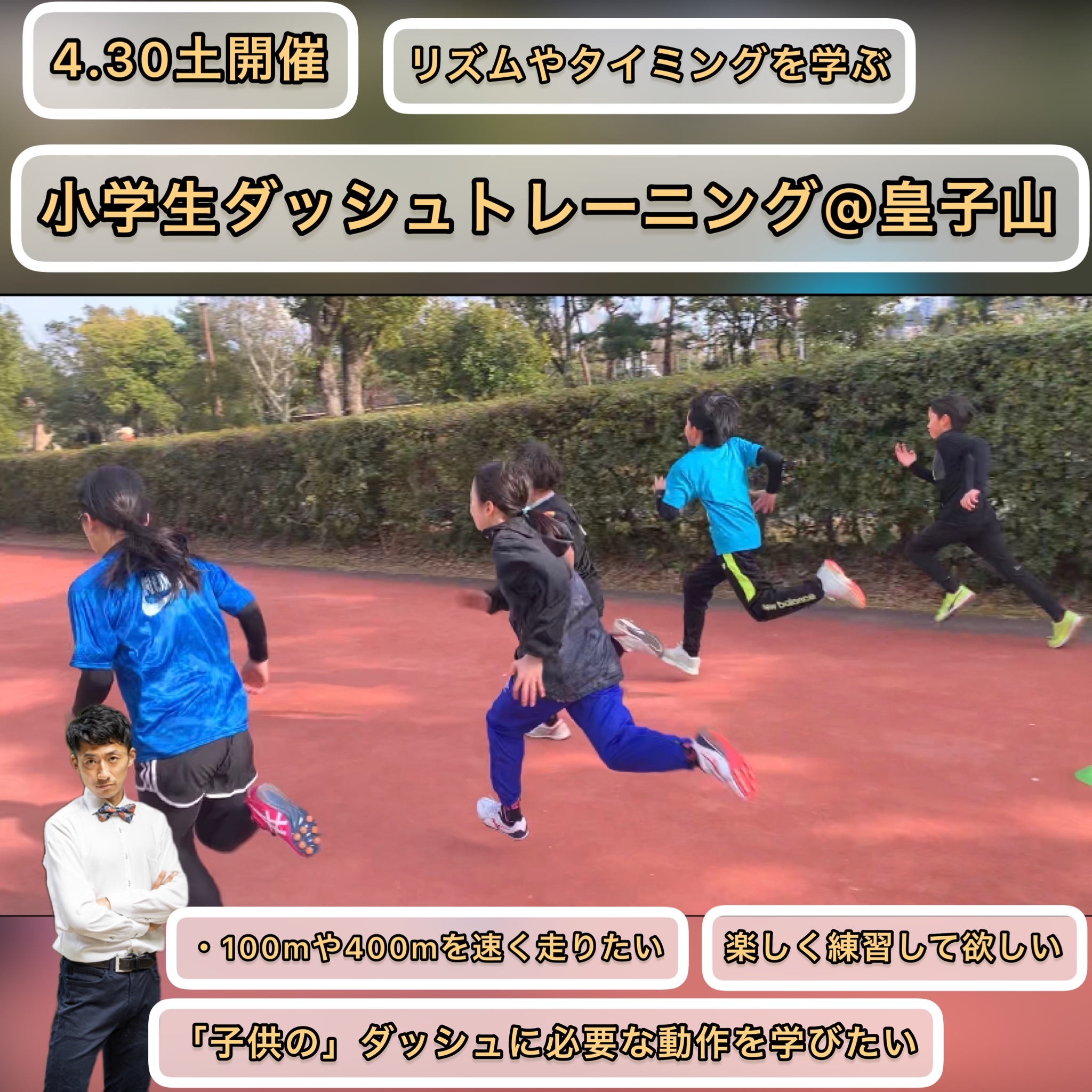【4.30土曜】瞬時にフルスピードを出せるようにする!?小学生陸上教室@週末皇子山 受付終了