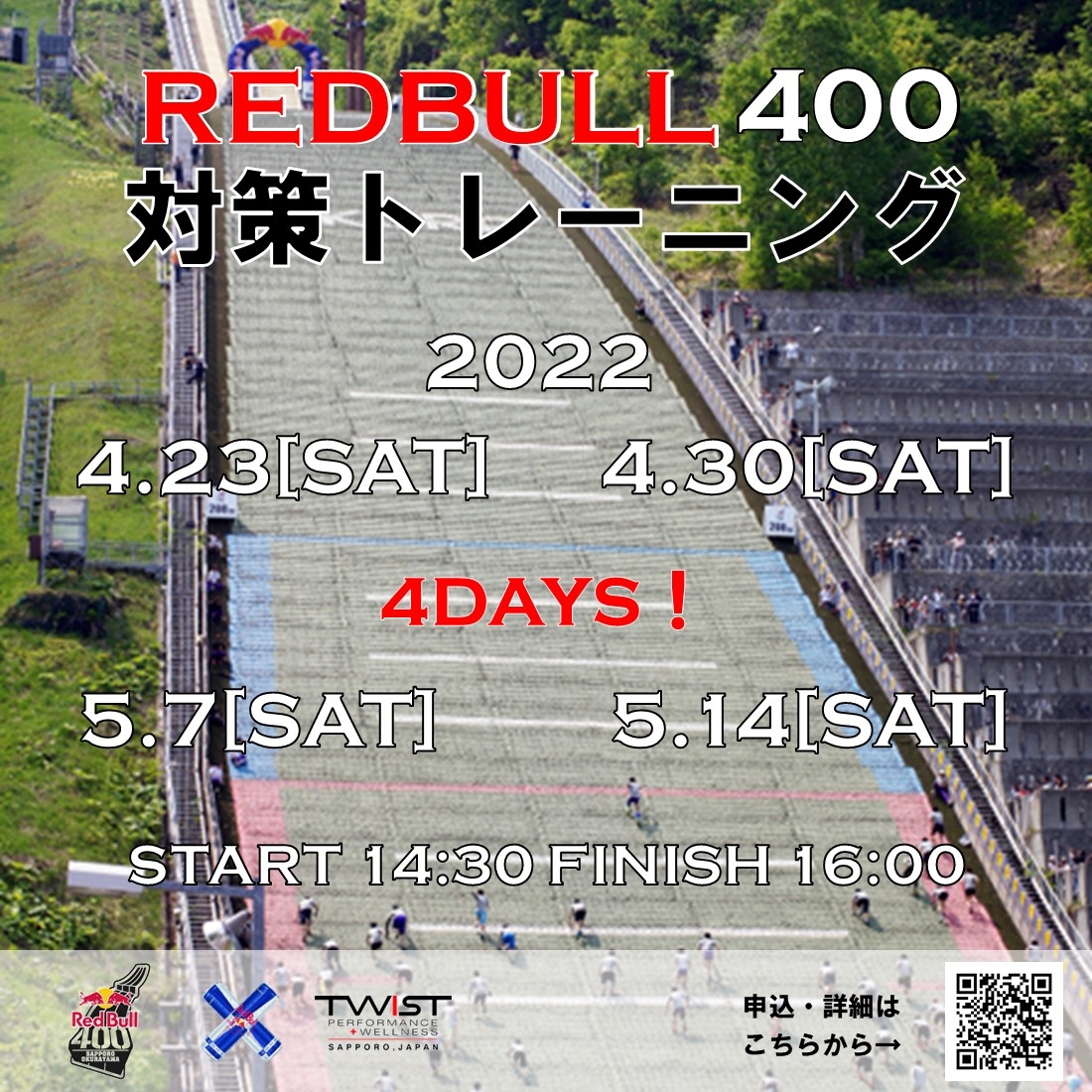 このイベントは2022/5/22(日)に開催されるREDBULL400の参加者を対象としたトレーニングイベントです。