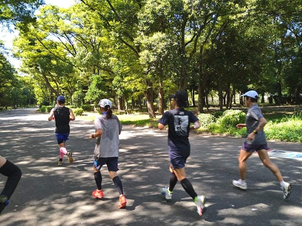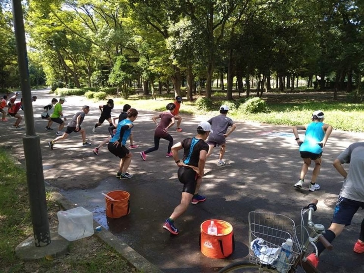 大阪城公園内の日がげのエリアをメインに、しっかり給水をとり、冷水を浴びながら、安全に行っていきます。