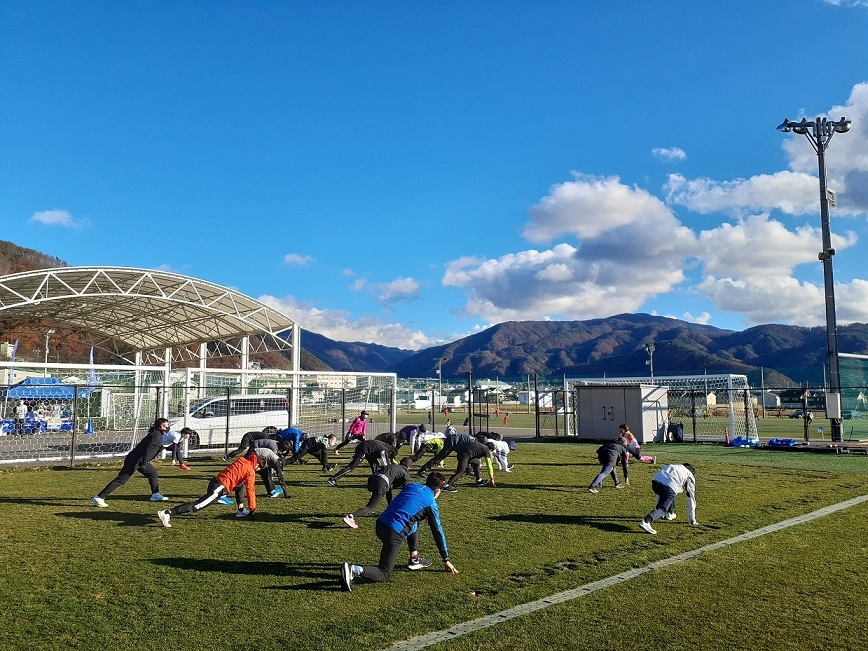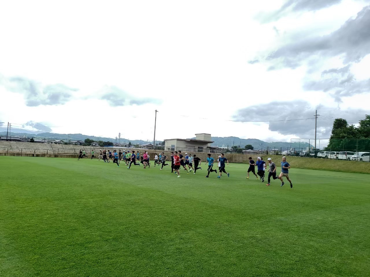 ・芝コート内での動きづくり、実走(3km~5km程度)