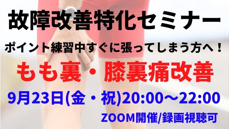 ポイント練習中にすぐにもも裏が張ってしまう方へ!もも裏、膝裏痛改善セミナー