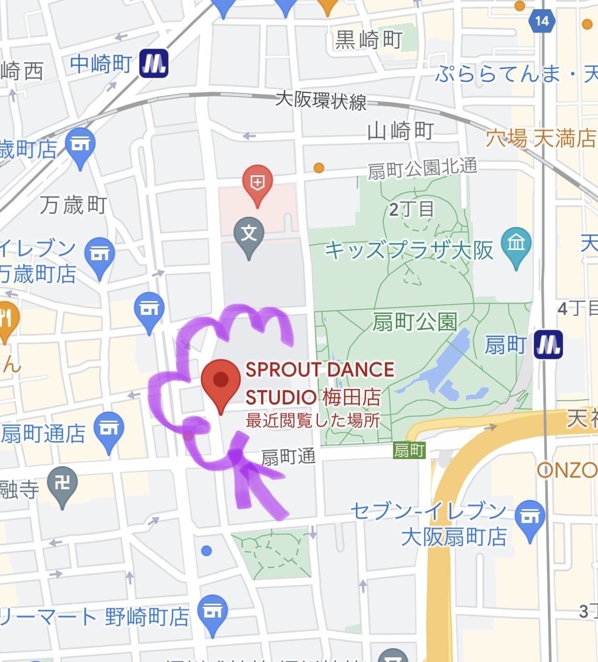 場所は「SPROUT DANCE STUDIO 梅田店」です。