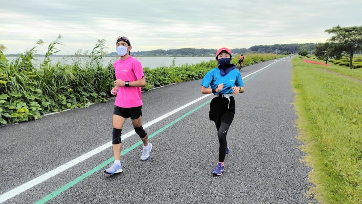 - 準備体操後、状況に応じた距離のラン(手賀沼の周遊コースを走ります)